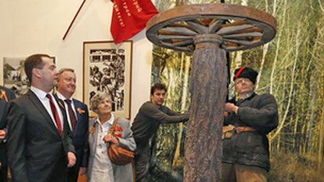 Премьер-министр России Дмитрий Медведев был в числе первых, кто ознакомился с экспозицией «Беларусь в годы Великой Отечественной войны».