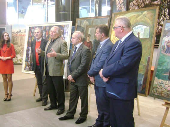 В открытии выставки приняли участие заслуженный деятель искусств Республики Беларусь Владимир Васильевич Уроднич и лауреат Специальной премии Президента Республики Беларусь «За духовное возрождение», руководитель Студии военных художников Николай Афанасьевич Опиок. Их хорошо знают в республике. Руководитель Студии военных художников Н. Опиок много и плодотворно работает в патриотической тематике. В начале этого года в Художественной галерее Михаила Савицкого экспонировалась персональная выставка произведений «Время и личность», приуроченная к 80-летию художника. Среди представленных на выставке работ – известные картины – «Щит Отечества», «Музы в строю», «Выпускники Минского суворовского» и другие.